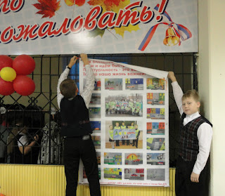 А еще дежурные нашего класса помогли мне раздать ребятам всех классов визитки с адресом моего блога.
